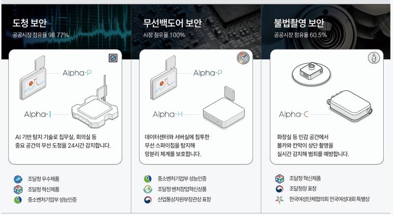 이 분야에서 독보적인 기술력을 보유한 기업이 바로 지슨이다. 지슨의 ‘무선백도어 해킹 탐지 시스템(Alpha-H)’은 데이터센터나 서버실 등에 침투한 무선 스파이칩을 실시간으로 탐지해 망분리 체계를 보호하는 국내 유일의 솔루션이다. 이러한 기술적 독점력을 바탕으로 지슨은 해당 시장에서 100%의 점유율을 기록하고 있다.