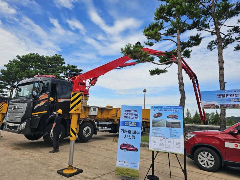 ‘다굴절 배수시스템’은 31m 길이의 접이식 붐을 활용해 좁은 공간 접근성을 높였고, ‘대용량 배수시스템’은 초대형 펌프를 통해 장거리 대량 배수가 가능하다. 두 시스템을 결합해 저지대나 지하 공사현장 등에서 흡입·이송을 동시에 수행하는 복합 운용이 가능해졌다.