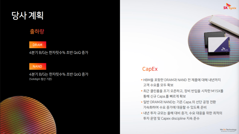 • 4분기에는 HBM과 서버향 디램, 엔터프라이즈 SSD 중심으로 판매 확대 계획