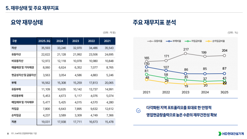 • 다각화된 지역 포트폴리오 기반의 안정적인 영업 현금흐름 창출로 높은 수준의 재무 안정성 유지