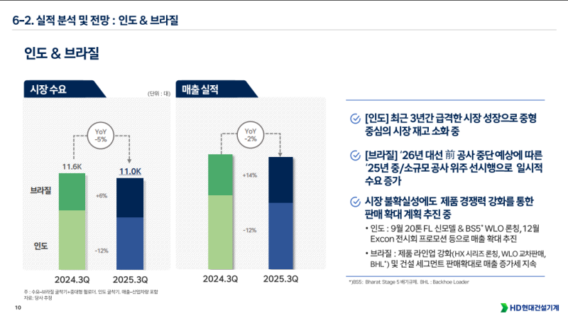 • 아직 확정된 내용은 없으나 현대건설기계는 브라질·인도 등 신흥 지역 법인 비중이 큰 구조