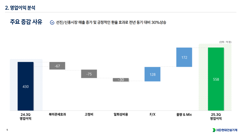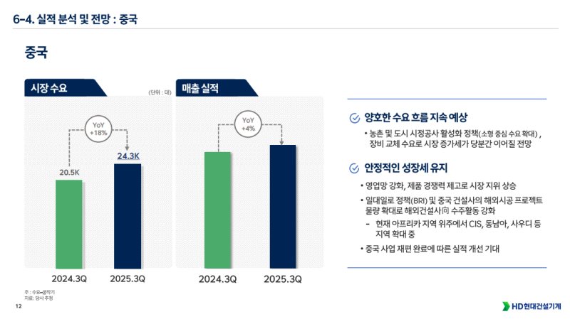 • 신기종 판매: 4월 바우마에서 공개한 36톤·40톤급 차세대 장비가 8월부터 본격 판매되며 성장에 기여