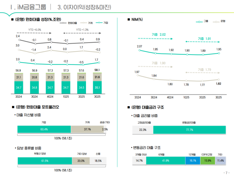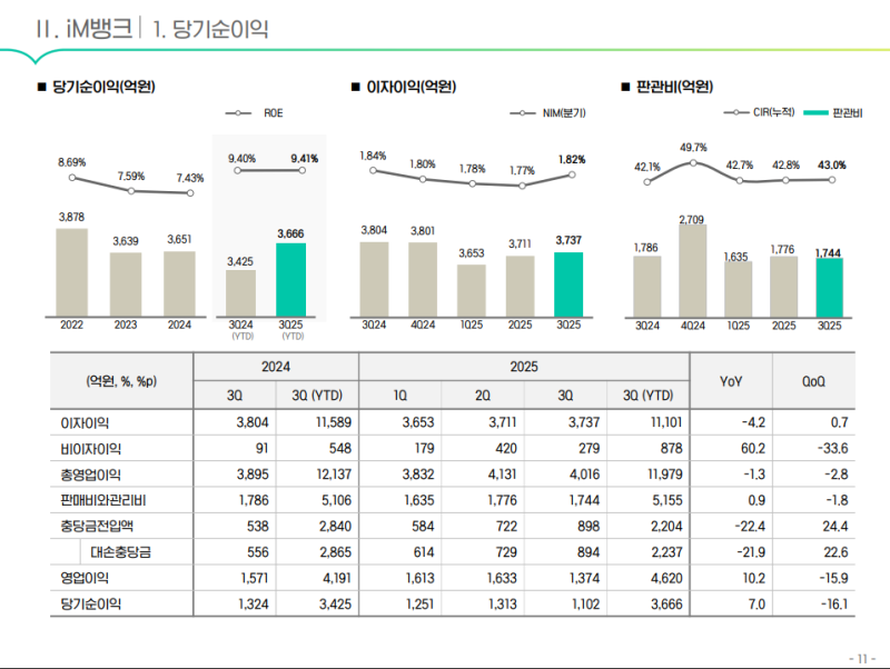 • iM뱅크 : NIM 1.82%로 반등, 충당금 감소에 힘입어 순이익 3,666억 원 (YoY +7%)