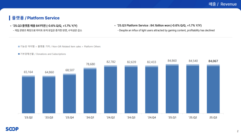 • 스트리머 지원금: 25억 원 (QoQ -0.7%, YoY -22%)