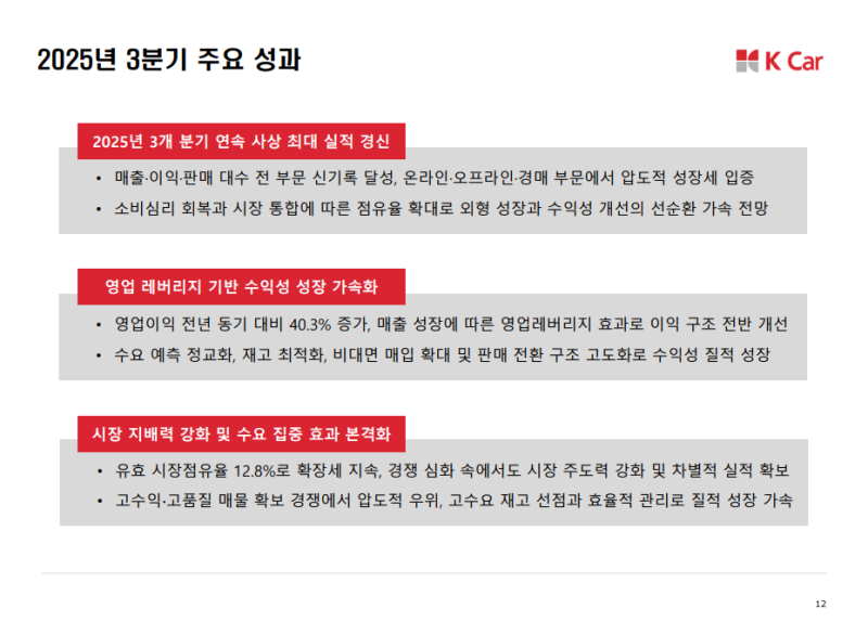 • 중고차 소매와 경매 부문 모두 고른 성장으로 외형 확대와 수익성 개선 동시 달성