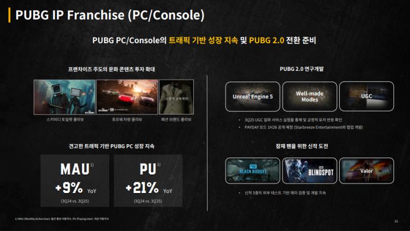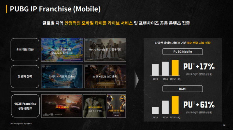 • 트래픽 방어와 수익화를 병행하는 운영 전략으로 PUBG 프랜차이즈의 경쟁력 입증