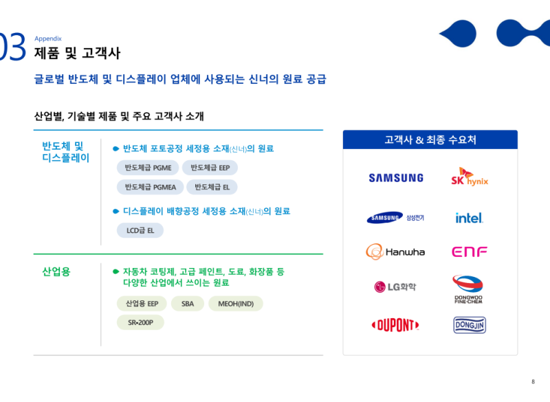 • 당사는 반도체 소재 공급을 확대하며 제품 포트폴리오 재편을 통해 매출과 수익성 개선을 동시 추진