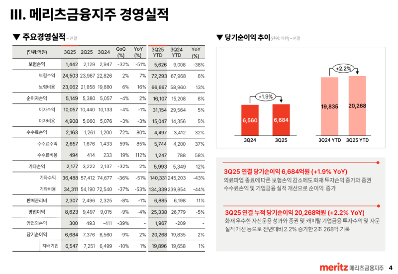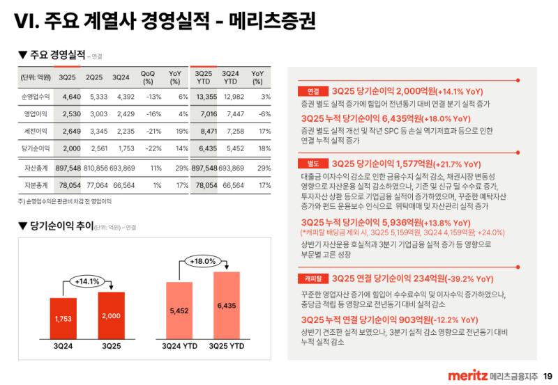 • 25년 3분기 연결 당기순이익은 2,000억원으로 전년동기 대비 14.1 % 증가