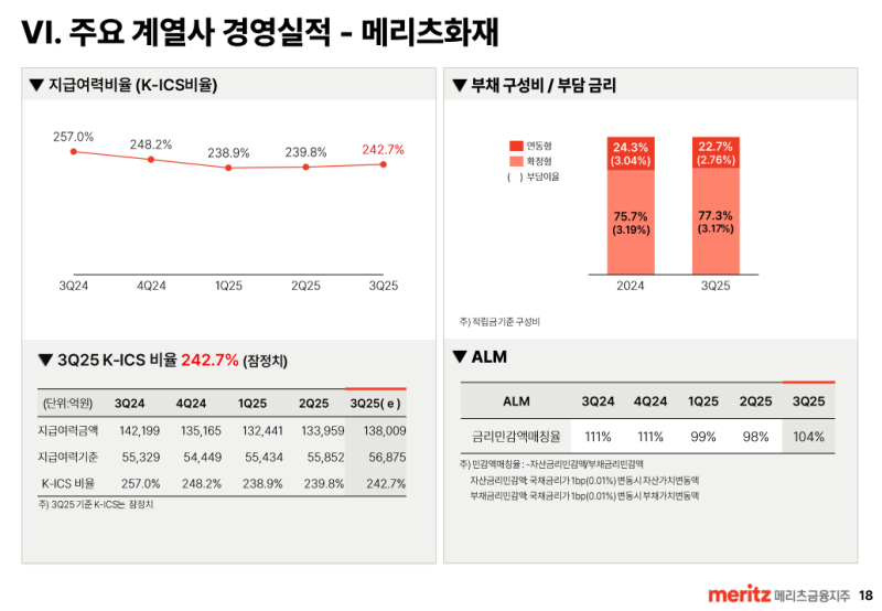 • ALM 매칭률 103.5%, K-ICS 242.7%로 자본 건전성 충분